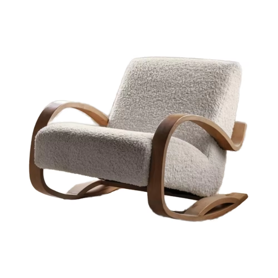 เก้าอี้โยกเฟอร์นิเจอร์ในร่มทำจากไม้สักพร้อมที่นั่งนุ่มทำจากอินโดนีเซีย