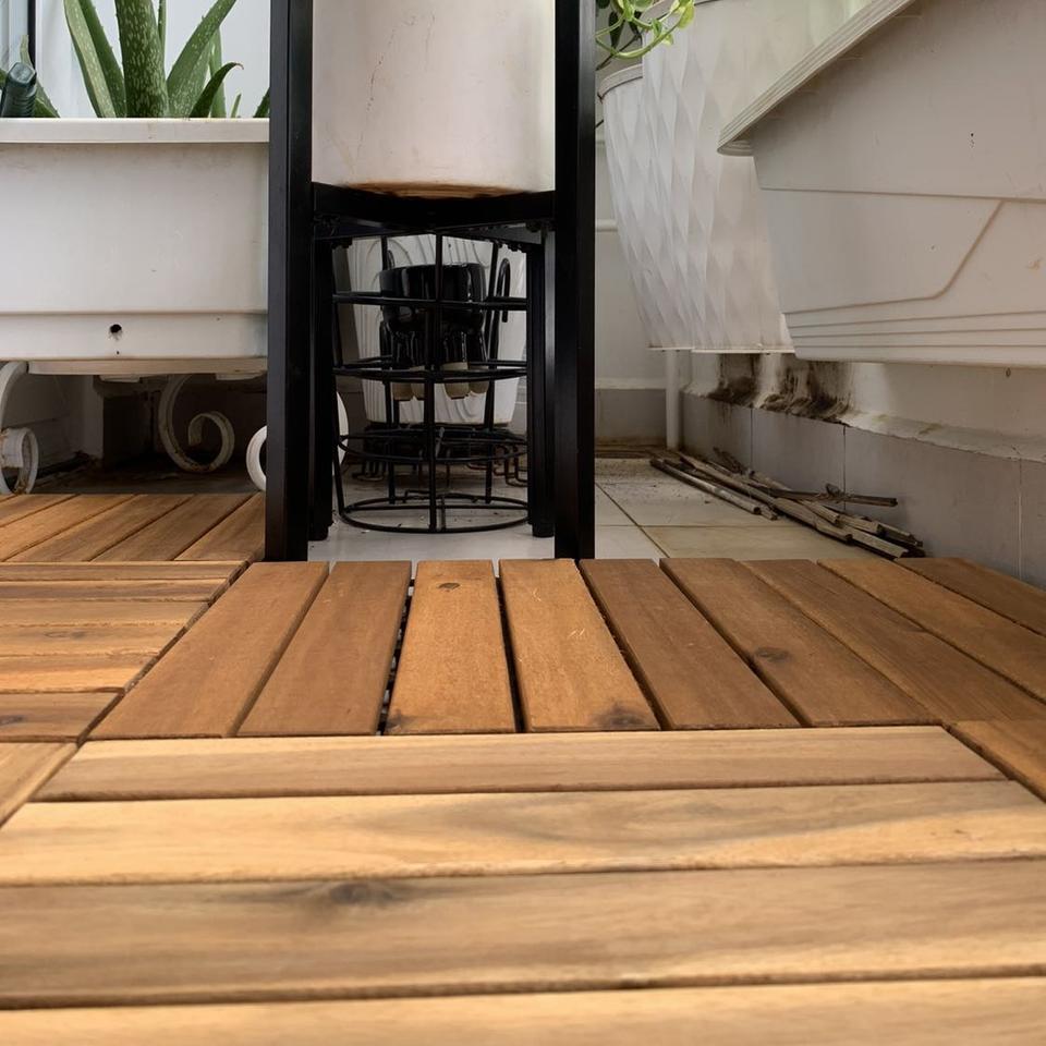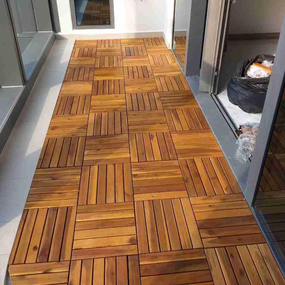 กระเบื้องพื้นไม้สักสำหรับกลางแจ้ง ขนาด 30x30 ซม. หนา 12 มม. แบบประกบ 6 แผ่น ลายไม้ธรรมชาติ สำหรับตกแต่งบ้าน รุ่นโมเดิร์น สมูท เป็นมิตรกับสิ่งแวดล้อม