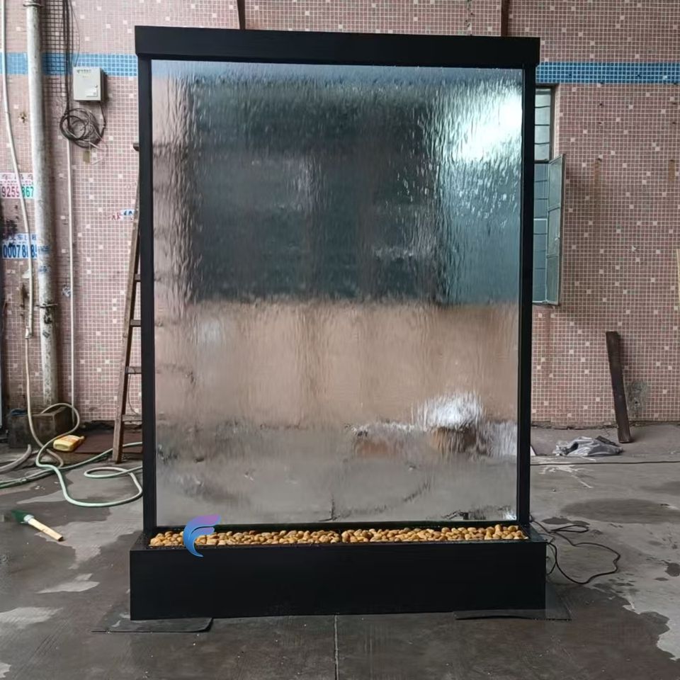 Indoor water feature mirror glass water wall fountain with led light home decoration wall mounted waterfall