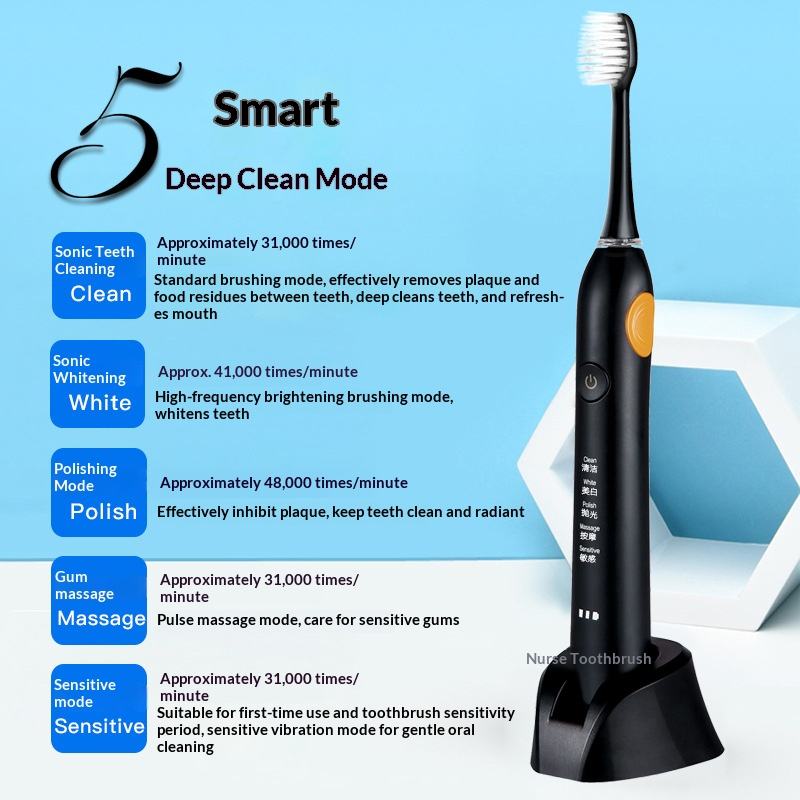 แปรงสีฟันไฟฟ้าโซนิคแบบชาร์จไฟได้ ระบบแม่เหล็กไฟฟ้า 5 ระดับความแรง สำหรับผู้ใหญ่ ขายส่ง กันน้ำ IPX7