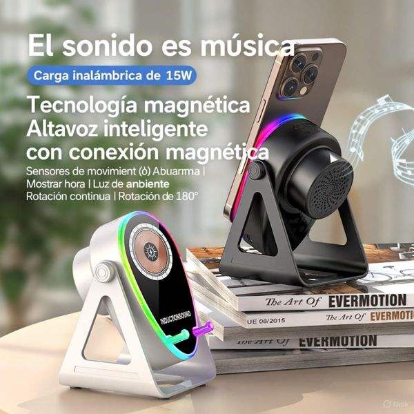 ลำโพงแม่เหล็ก InductionSound 15W ลำโพงอัจฉริยะพร้อมระบบชาร์จไร้สาย ไฟ LED และหน้าจอแสดงผลนาฬิกา