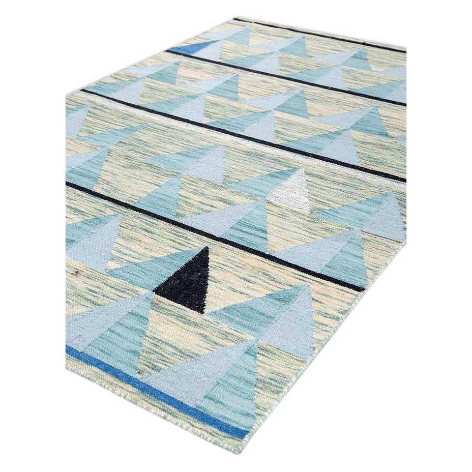 พรมลายเรขาคณิตอินดัสบาร์สีเทาและสีดำ ทอแบบแบน ทำจากขนสัตว์และวิสโคส สำหรับบ้าน รุ่น ADWV-13042