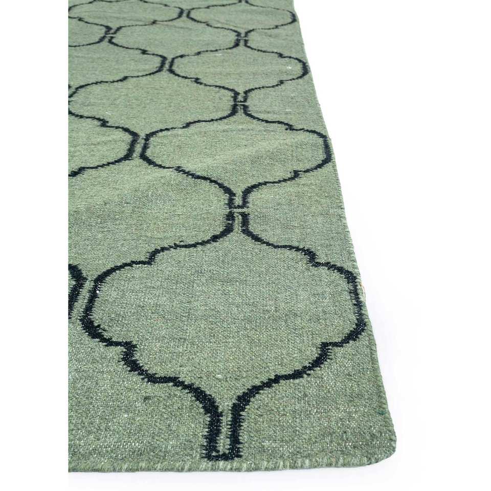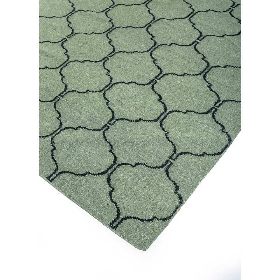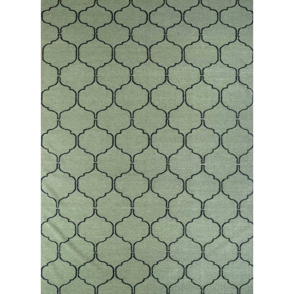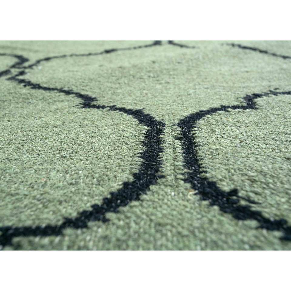 พรมขนสัตว์ทอมือสีเขียว Indusbar รุ่น Dwrm-119 รูปทรงสี่เหลี่ยมผืนผ้า ลายทางสำหรับห้องโถง ห้องนั่งเล่น และรถยนต์ พรมปูพื้นทำจากปอกระเจา ทนทาน