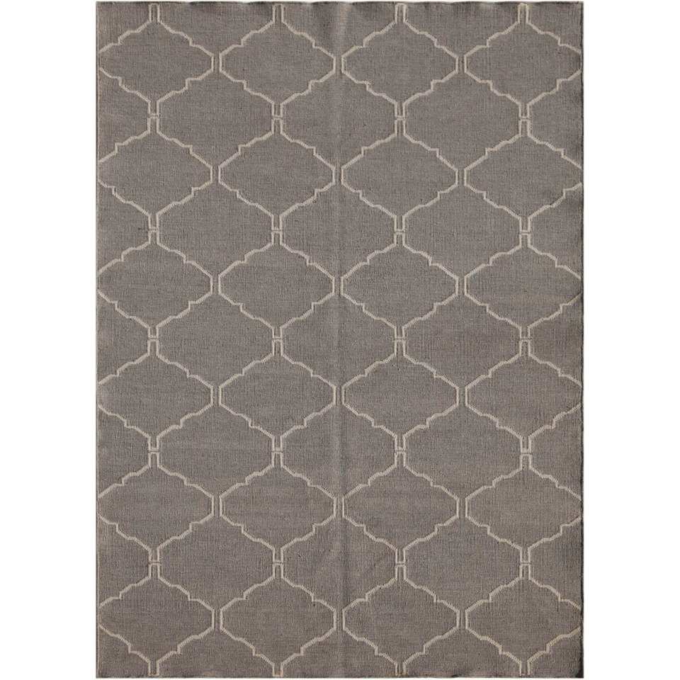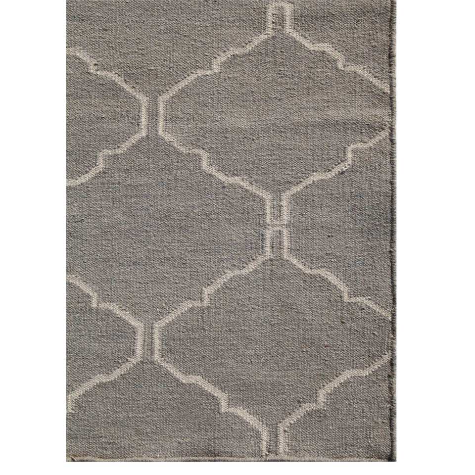 พรมขนสัตว์คิลิมทำมือ Indusbar ลายเรขาคณิตสีเทา-ดำ ขนาดกว้าง 4 เมตร สำหรับปูพื้นบ้าน ทอแบบเรียบ หนา 10 มม. - รุ่น