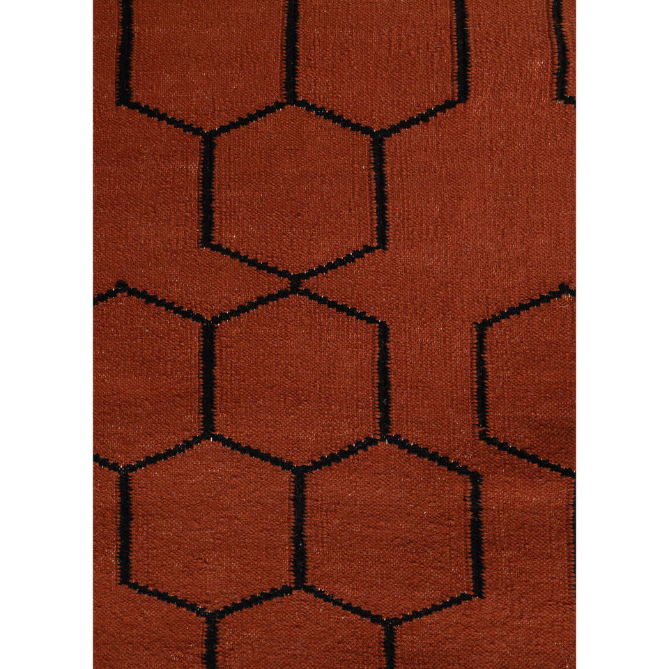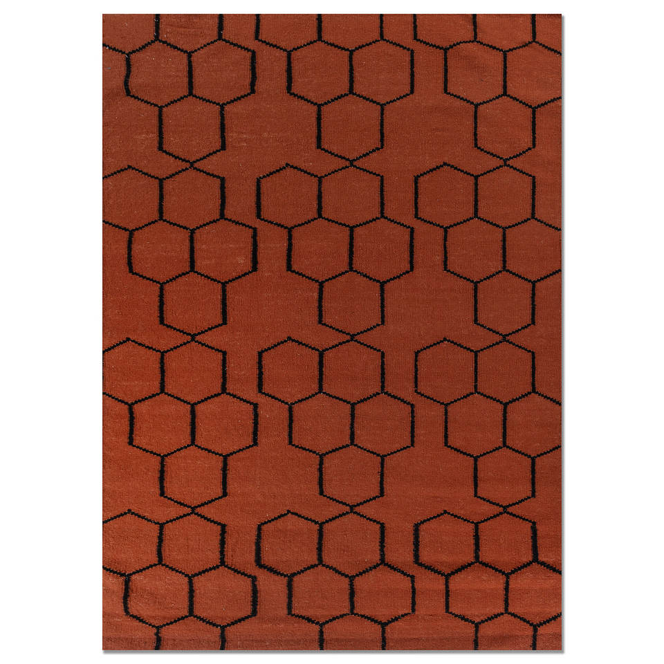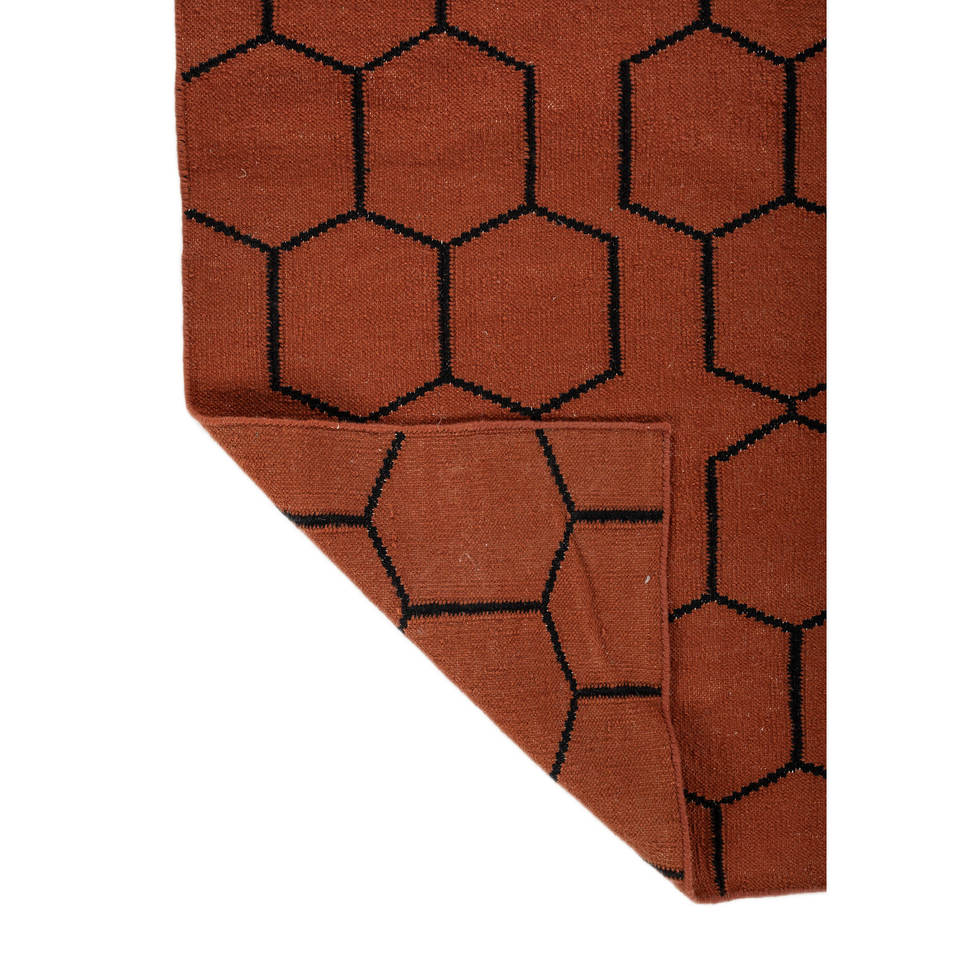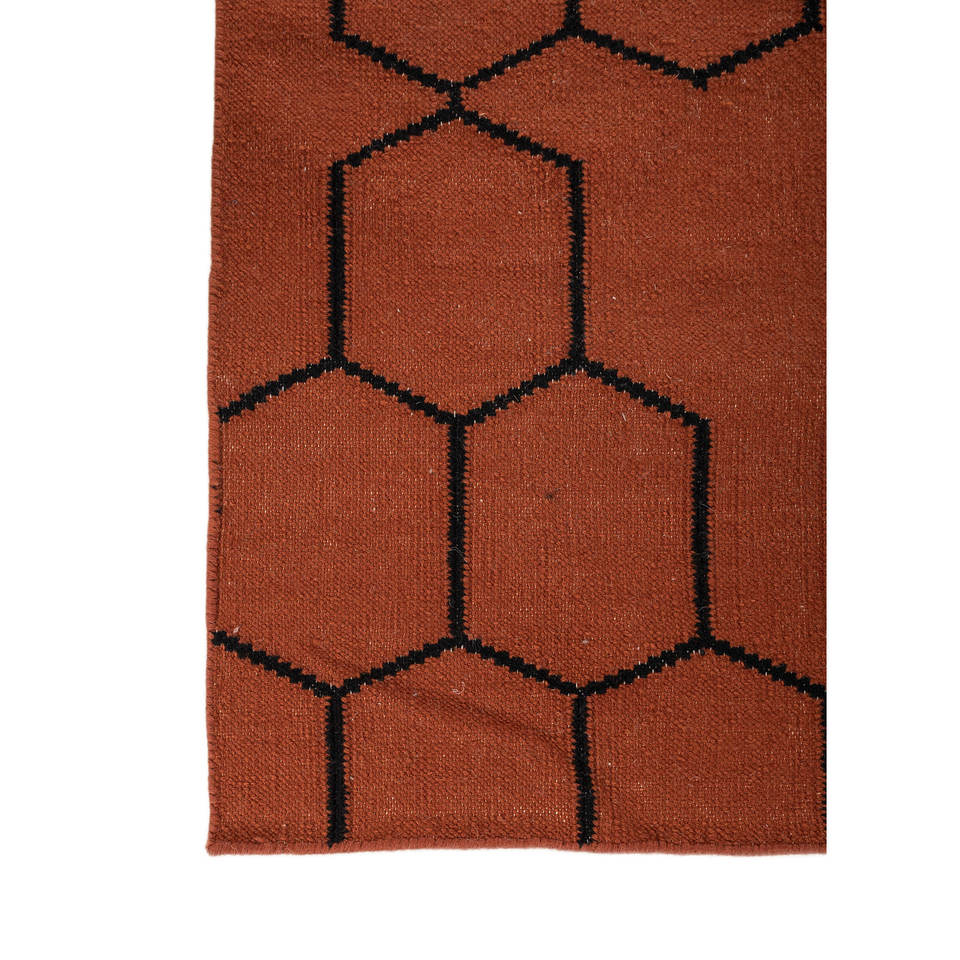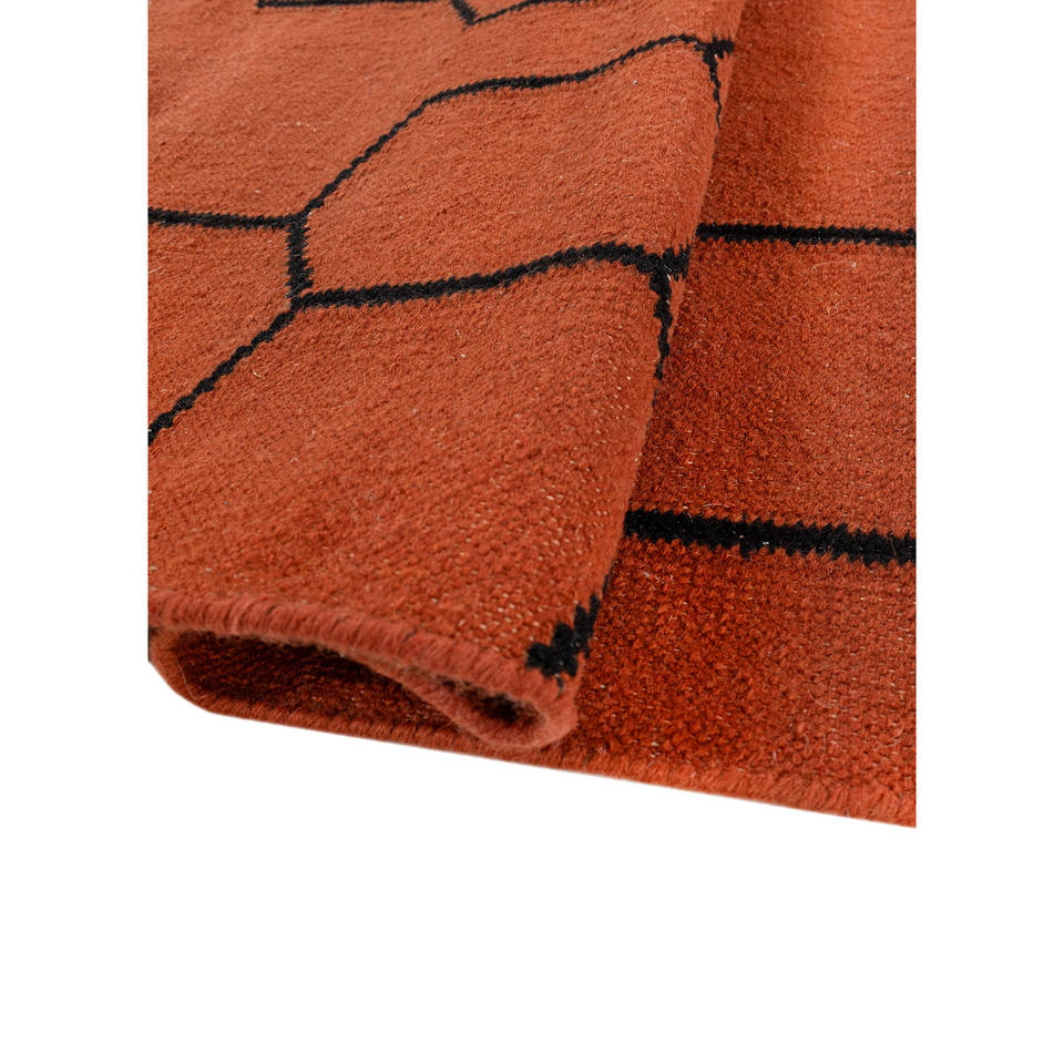 พรมขนสัตว์ทำมืออินดัสบาร์ สีแดงส้ม ทอลายเรียบ ลายทางเรขาคณิต สำหรับบ้าน รูปทรงสี่เหลี่ยมผืนผ้า ห้องโถง ห้องนั่งเล่น Dwrm-117