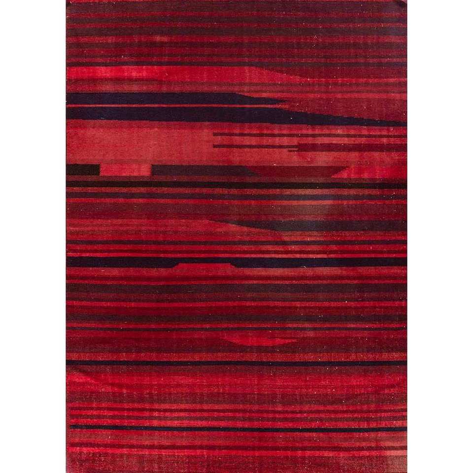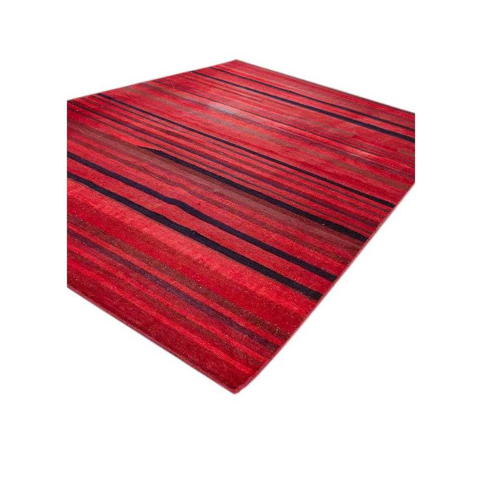 พรมลายทางอินดัสบาร์สีแดงและสีส้ม ทอแบบแบน ทำจากขนสัตว์และวิสโคส สำหรับบ้าน รุ่น Adwv-13036