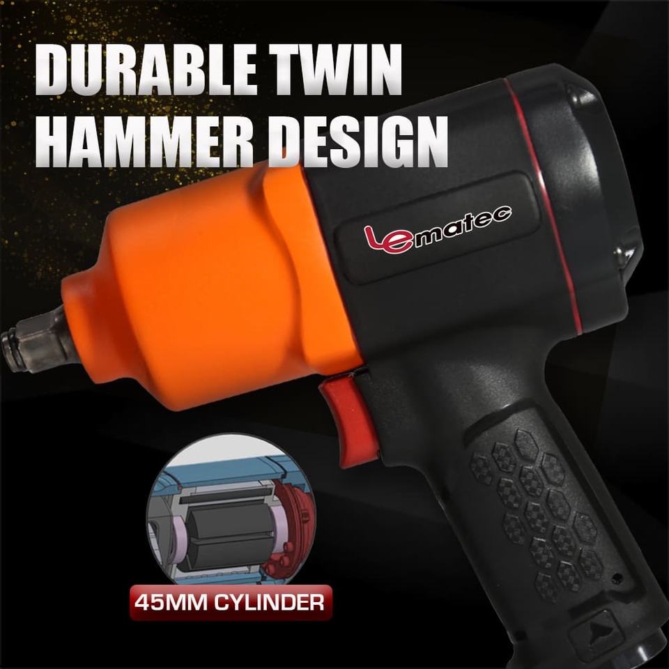 เครื่องเป่าลมแบบค้อนคู่ขนาด1/2นิ้วรุ่นอุตสาหกรรมใช้แรงบิด750ft-lb ใช้ได้ในไต้หวัน