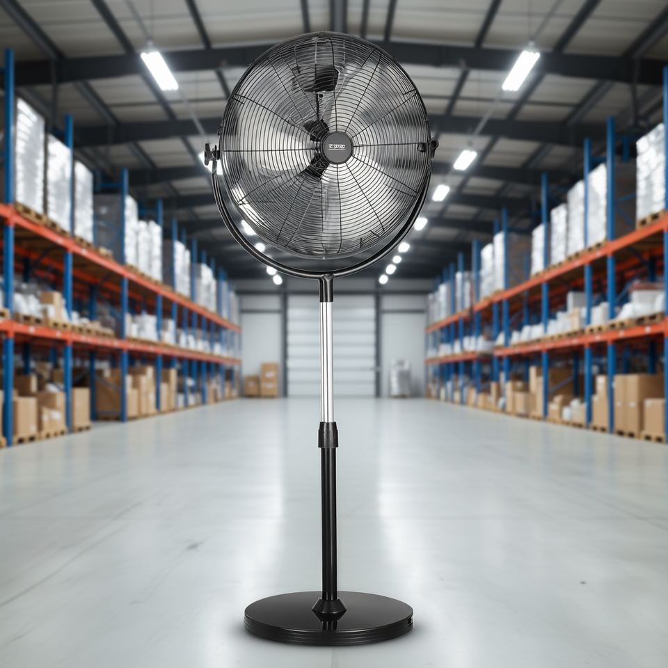 พัดลมตั้งพื้น Vevor ขนาด 20 นิ้ว ปรับความสูงได้ 3 ระดับ พัดลมระบายความร้อนสำหรับโรงงานอุตสาหกรรม มอเตอร์ AC ตัวเครื่องทำจากพลาสติก