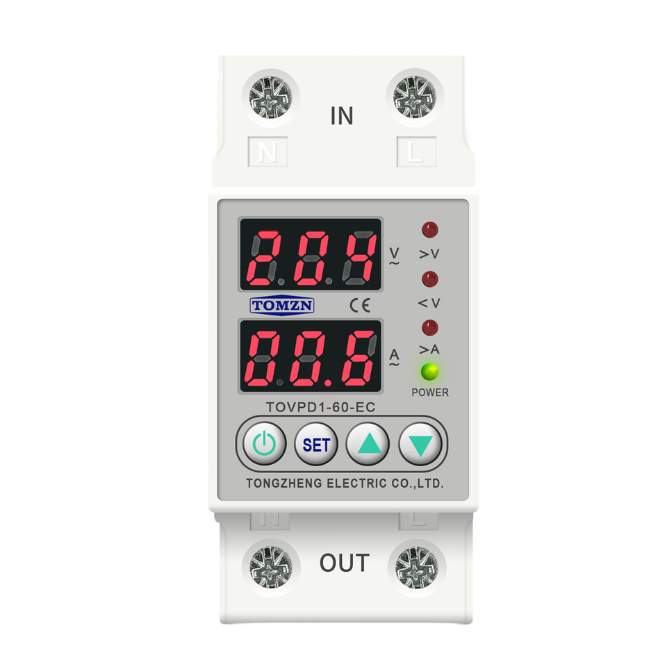 อุปกรณ์ป้องกันไฟกระชากอัตโนมัติแบบติดตั้งบนราง Din สำหรับอุตสาหกรรม 230V ปรับค่าได้ 40A 63A พร้อมปลอกหุ้มวัสดุพลาสติก