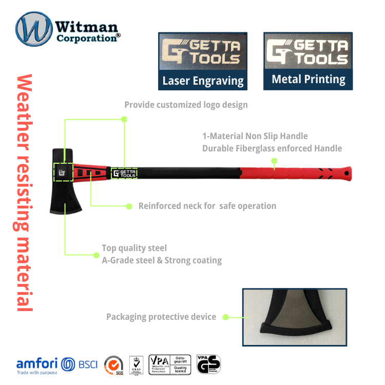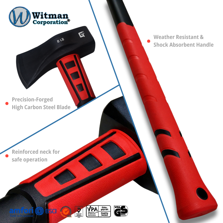 Industrial 8lb Splitting Maul Axe Grade-A Carbon Steel Sharpened Hardened Head Reinforced Neck 92cm for Impact Absorption