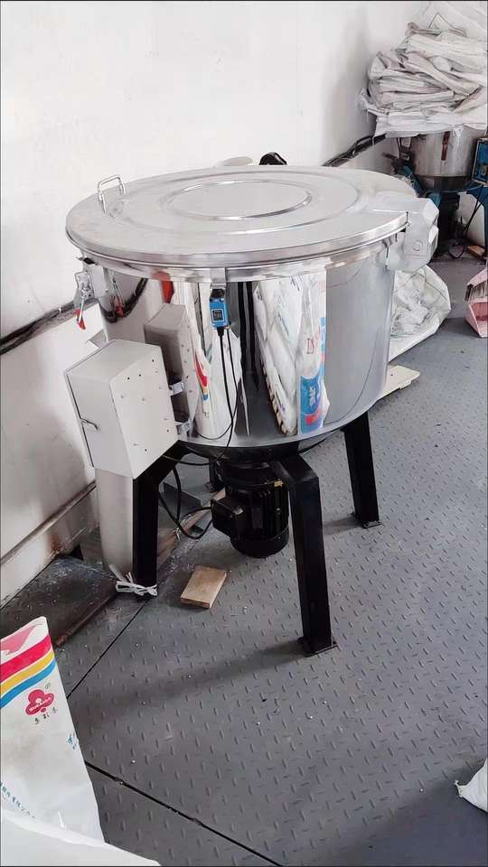 เครื่องผสมสีผงอุตสาหกรรมแบบอัตโนมัติควบคุมด้วย PLC ทำจากสแตนเลส สำหรับผสมเม็ด PP แบบแบทช์ พร้อมระบบลดความเร็วในการผสมแบบแห้งและขึ้นรูป
