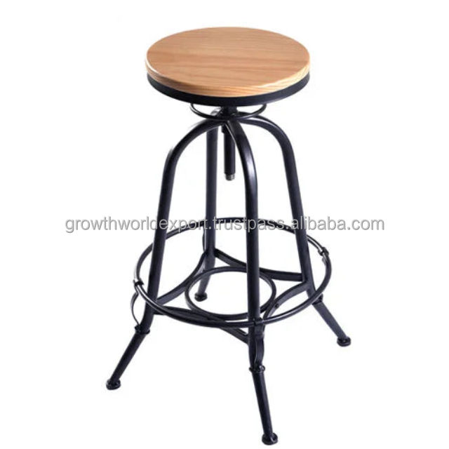 ชื่อผลิตภัณฑ์:เก้าอี้บาร์อุตสาหกรรมพร้อมฐานเหล็กและด้านบนไม้ (ปรับความสูงได้)