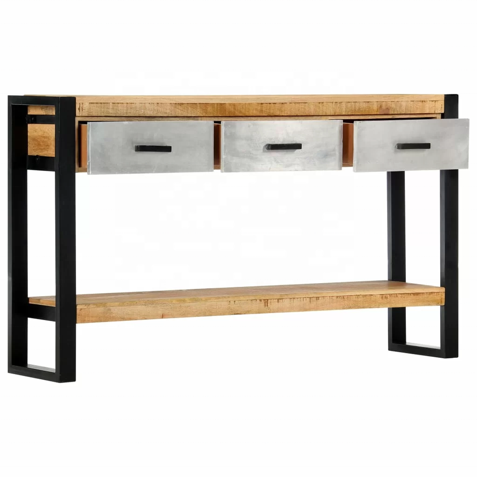 ไม้มะม่วงแข็งและเหล็กลิ้นชักสามชั้นเฟอร์นิเจอร์ห้องนั่งเล่นโต๊ะคอนโซลแบบอุตสาหกรรมสีดำและธรรมชาติ