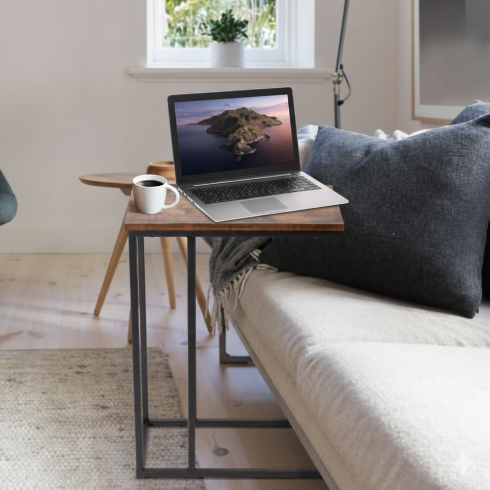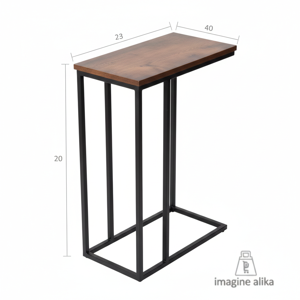 โต๊ะข้างทรงตัวซีสำหรับอุตสาหกรรม ท็อปไม้เนื้อแข็ง โครงเหล็กสีดำ | โซฟาและโต๊ะข้างเตียง