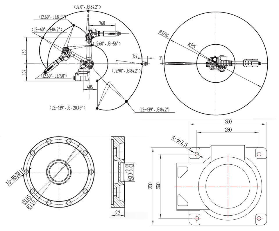 หุ่นยนต์แขนกลทรงกระบอก CNC สำหรับอุตสาหกรรมขนาด1850มม. น้ำหนักบรรทุกสูง