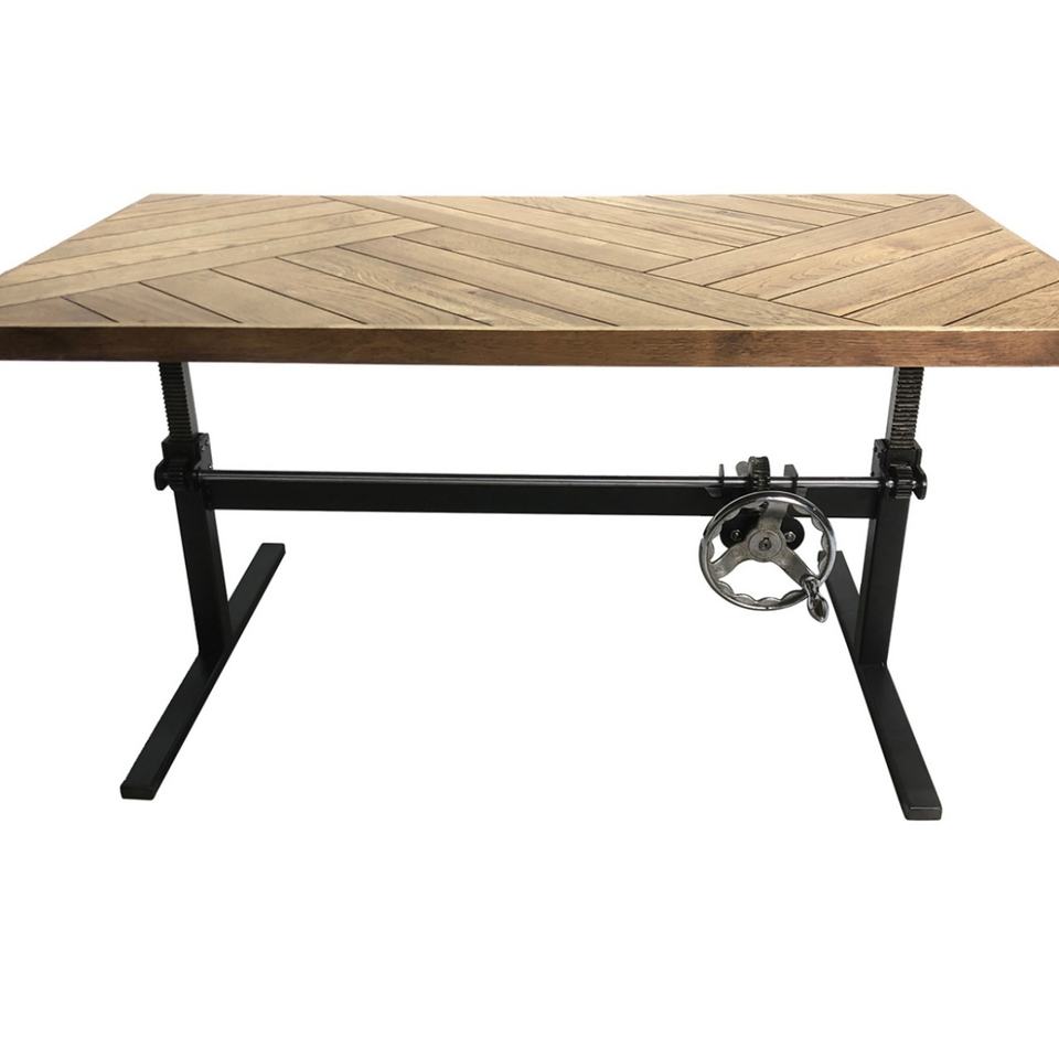 โต๊ะกาแฟ/โต๊ะรับประทานอาหารแบบยกได้ ปรับความสูงได้ด้วยมือหมุน ฐานเหล็กหล่ออุตสาหกรรม ท็อปไม้โบราณ