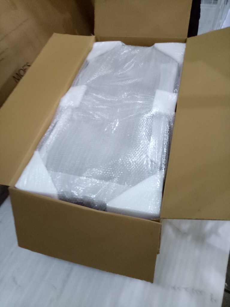 (ผลิตภัณฑ์จะถูกบรรจุลงในฟองและโฟมมุมแล้ววางลงในกล่องลูกฟูกและใช้เทปและบรรจุแถบสำหรับปิดกล่อง)