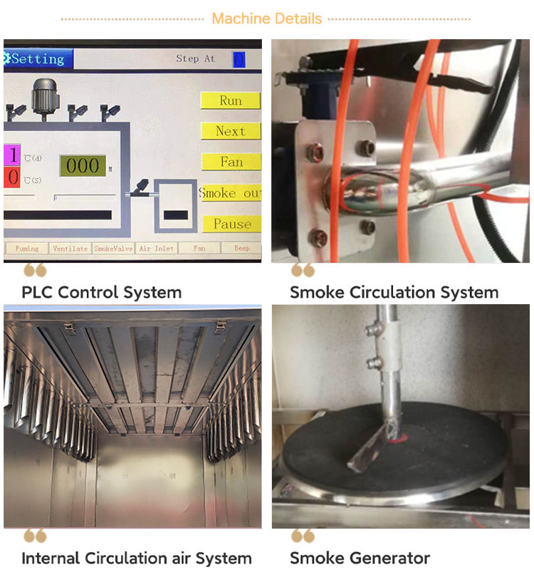 เตาอบไอน้ำแบบรมควันเนื้อสำหรับอุตสาหกรรมเครื่องรมควันไส้กรอกอัตโนมัติสำหรับการค้า