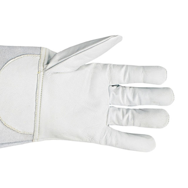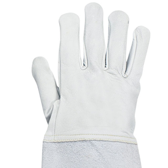 ถุงมืองานเชื่อมหนังวัวแยกชิ้นสำหรับคนงานก่อสร้างอุตสาหกรรมถุงมือเชื่อมประสิทธิภาพสูงป้องกันความร้อน