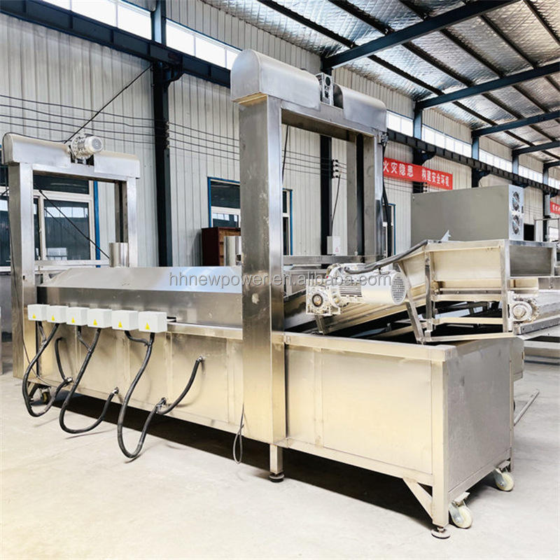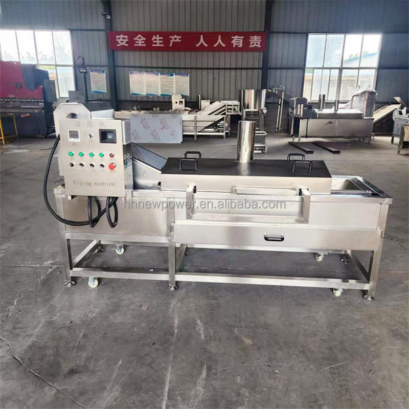 เครื่องทอดไก่ถั่วลิสงสายพานลำเลียงอุตสาหกรรมเครื่องทอดปลาขนาดใหญ่เครื่องทอดลูกชิ้นรูปหัวหอมอย่างต่อเนื่อง