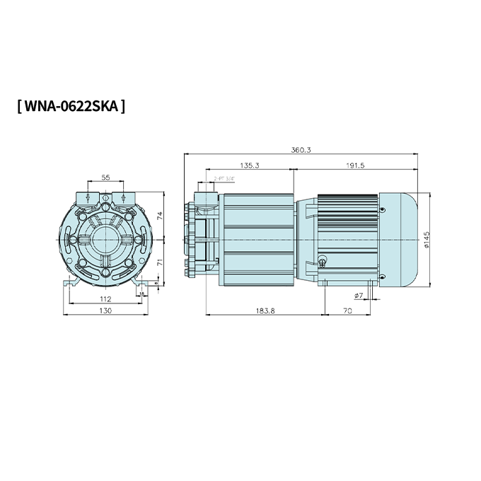 ปั๊มน้ำหมุนเวียนสำหรับอุตสาหกรรม รุ่น WNA-0380SKA 2.2 กิโลวัตต์ 3 แรงม้า สแตนเลส สายเคเบิล 5 เมตร รับประกัน 1 ปี รับผลิตแบบ OEM/ODM/OBM ตามความต้องการ
