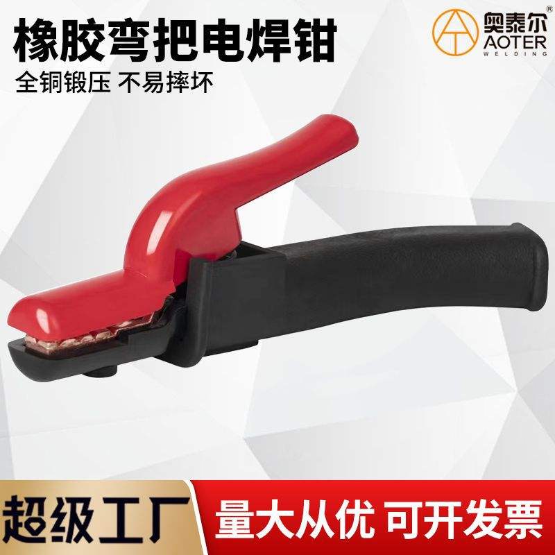 คีมเชื่อมทองแดงอุตสาหกรรมพร้อมด้ามจับโค้งยาง 800A ปากคีมเรียบสำหรับงานเชื่อมไฟฟ้า