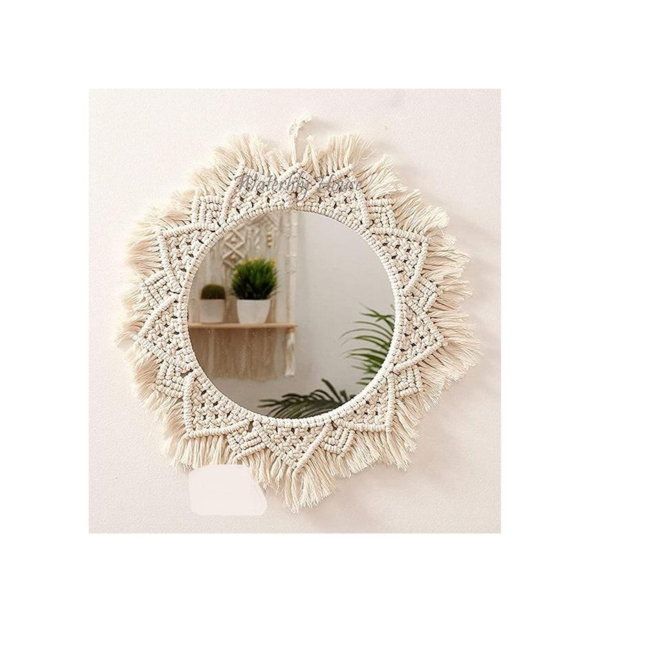 กระจกดีไซน์อุตสาหกรรมสไตล์โบโฮสำหรับแขวนผนังขอบ macrame กระจกทรงกลมสำหรับตกแต่งบ้านโรงแรมที่พักรีสอร์ทฯลฯ