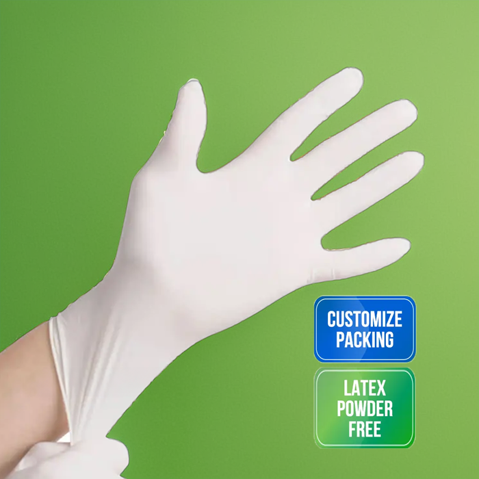 ถุงมือยางลาเท็กซ์แบบใช้แล้วทิ้งสำหรับงานอุตสาหกรรมแบบใช้แล้วทิ้งแบบผงน้ำยางข้นแบบมาเลเซียสวมใส่สบาย