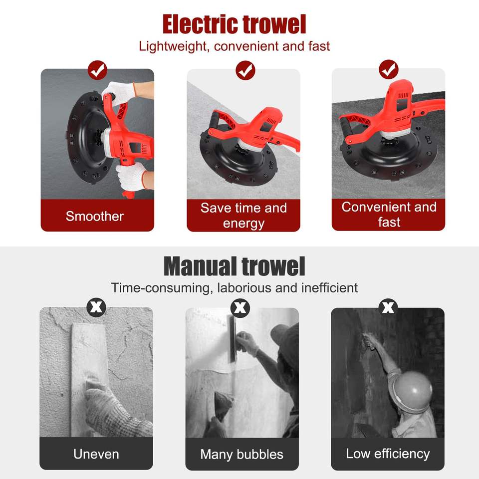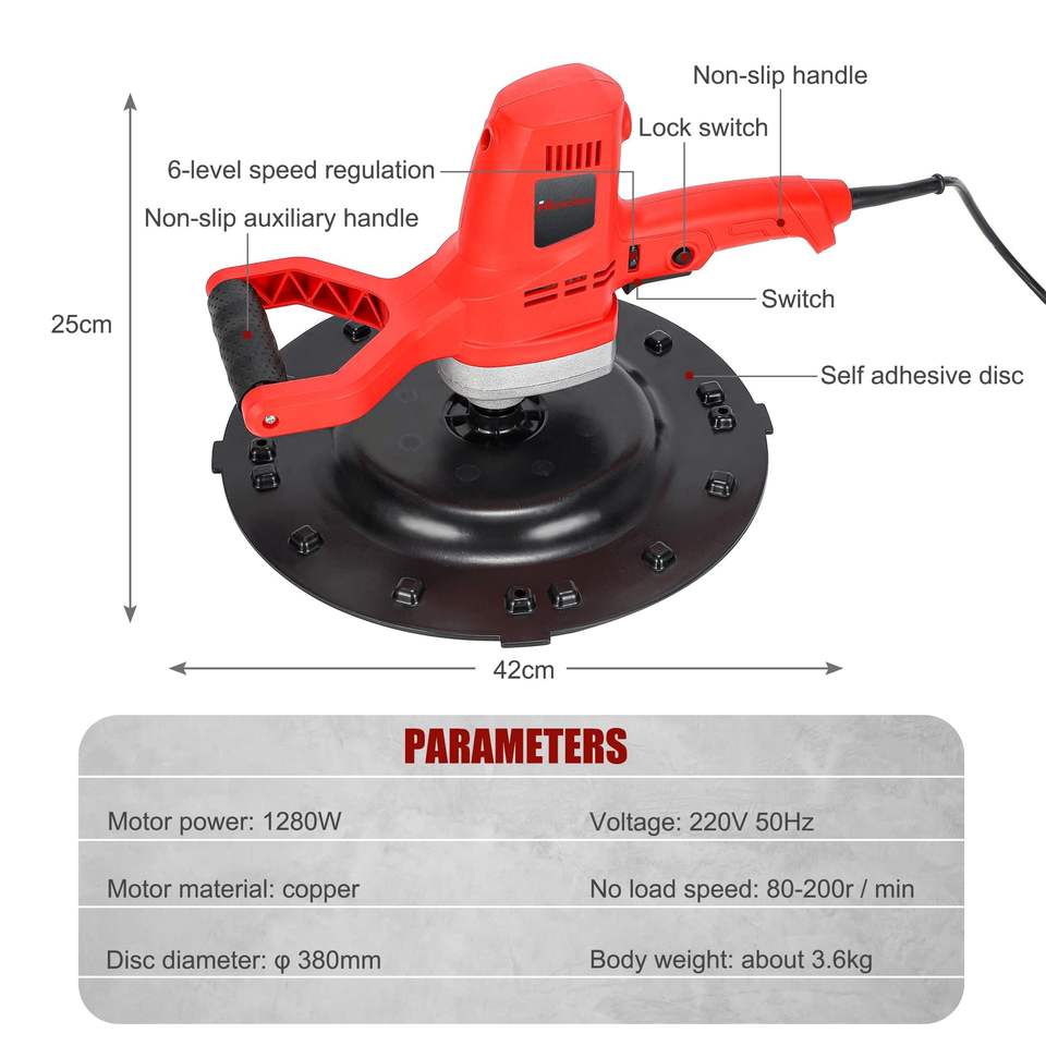 เครื่องขัดผนังปูนซีเมนต์ไฟฟ้าอุตสาหกรรม 1280 วัตต์ 220 โวลต์ ปรับความเร็วได้ 6 ระดับ เครื่องขัดปูนฉาบ DIY น้ำหนัก 3.6 กิโลกรัม