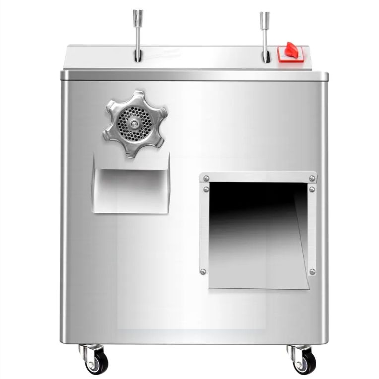 เครื่องบดเนื้อไฟฟ้าสำหรับอุตสาหกรรมเครื่องบดเนื้อแช่แข็งพร้อมมอเตอร์ที่ทรงพลังที่จำเป็นสำหรับการแปรรูปผลิตภัณฑ์จากเนื้อสัตว์