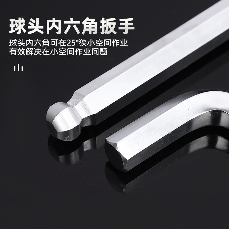 ประแจหกเหลี่ยมหัวบอลแบบยาวสำหรับงานอุตสาหกรรม เหล็กกล้า S2 รูปตัว L สำหรับซ่อมแซม ผ่านกระบวนการชุบแข็ง