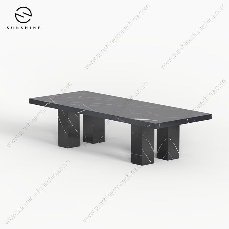 โต๊ะอาหารอุตสาหกรรมขนาดใหญ่พิเศษ ปรับแต่งได้ 8-12 ที่นั่ง ชุดประกอบสำเร็จรูป ทำจากหินเผาผิวหินอ่อนสีดำ