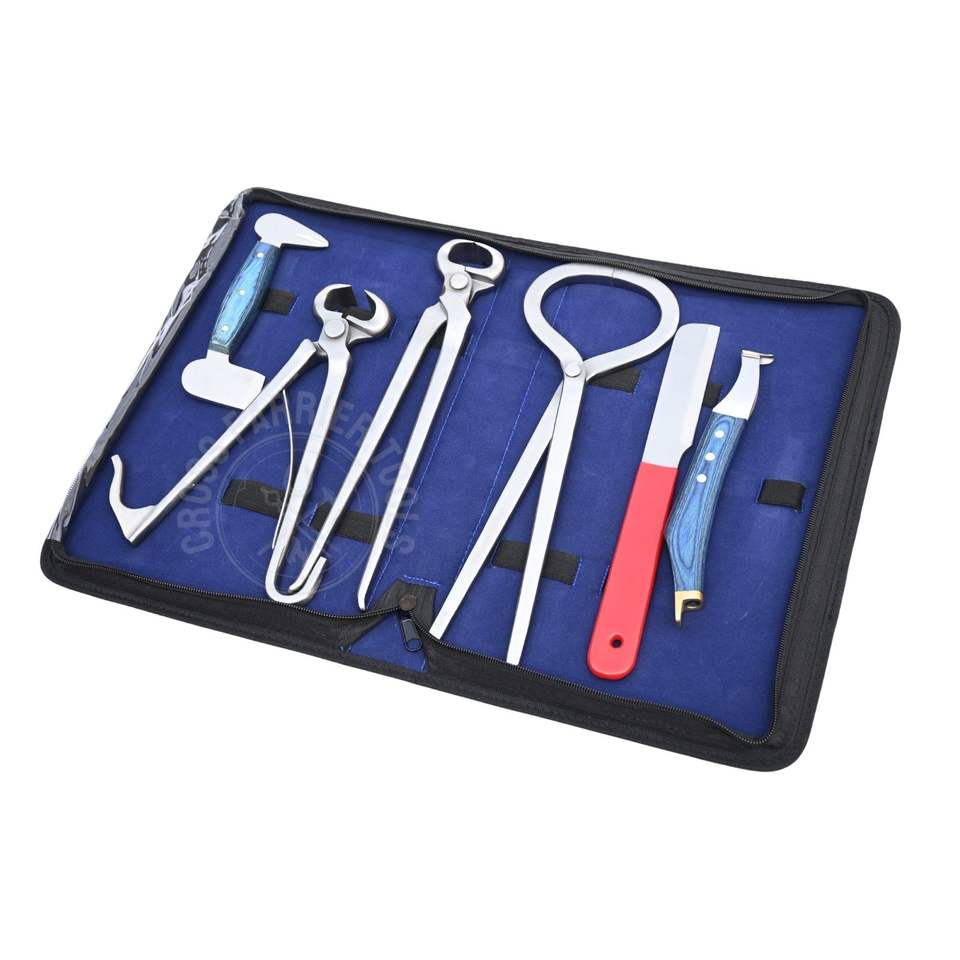 ชุดเครื่องมือช่างเกือกม้าสำหรับงานอุตสาหกรรม พร้อมเครื่องวัดความเจ็บปวดของกีบม้า คีมตัดกีบขนาด 12 นิ้ว คีมตัดกีบลูกม้า คีมย้ำกีบม้า มีดตัดกีบ และใบมีดแบบวงกลม