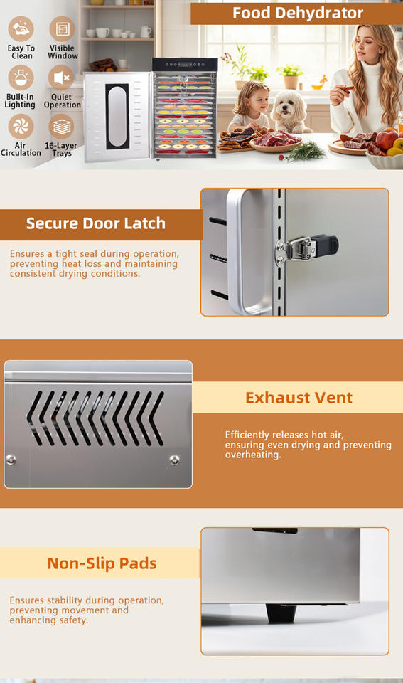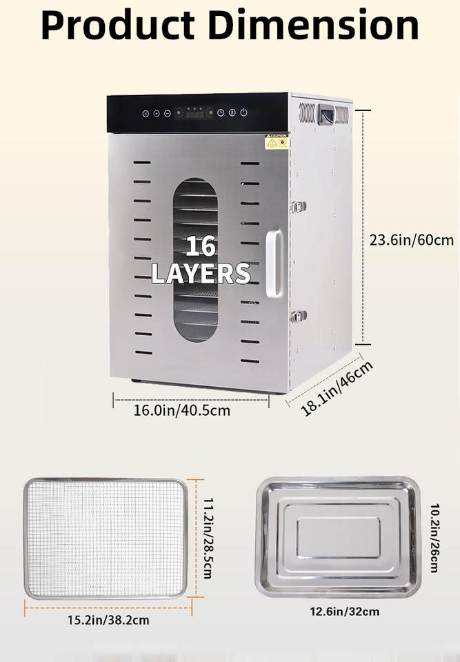 เครื่องอบแห้งอาหารอเนกประสงค์ 16 ชั้น ผลิตจากสแตนเลสเกรดอุตสาหกรรม สำหรับผลไม้และผัก