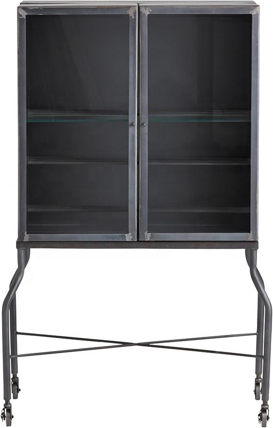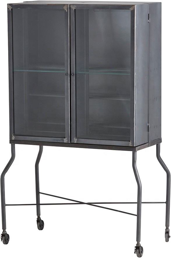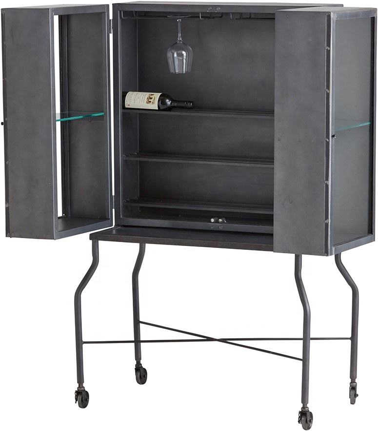 Industrial Furniture Modern Design Wine Bar Cabinet Glass Door & Wheels, Bar Cabinet with Movable Wheels