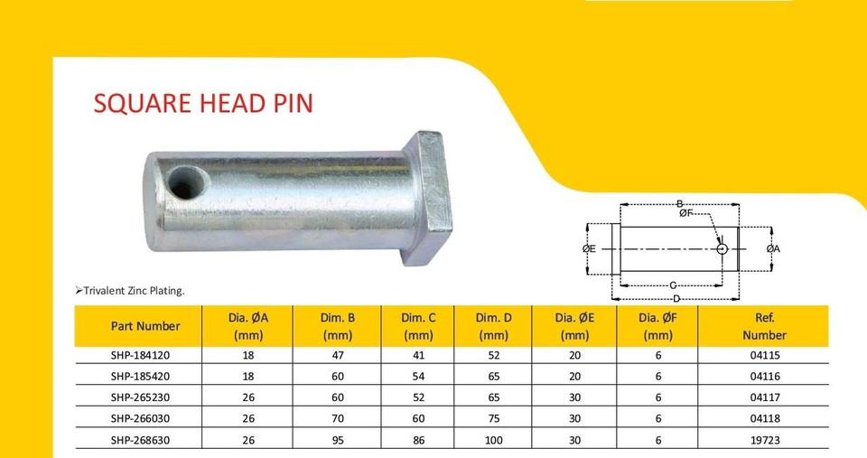 หัวหมุดทรงสี่เหลี่ยมเกรดอุตสาหกรรมขนาด18มม. สำหรับเครื่องจักรกลการเกษตรอุปกรณ์และฮาร์ดแวร์สำหรับฟาร์มที่ทนทาน