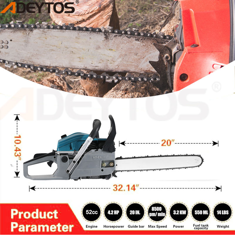 เลื่อยโซ่ยนต์เบนซินเกรดอุตสาหกรรม 58 ซีซี ราคาประหยัด ขนาด 20 นิ้ว พร้อมใบรับรองมาตรฐาน 1800 วัตต์ ADEYTOS