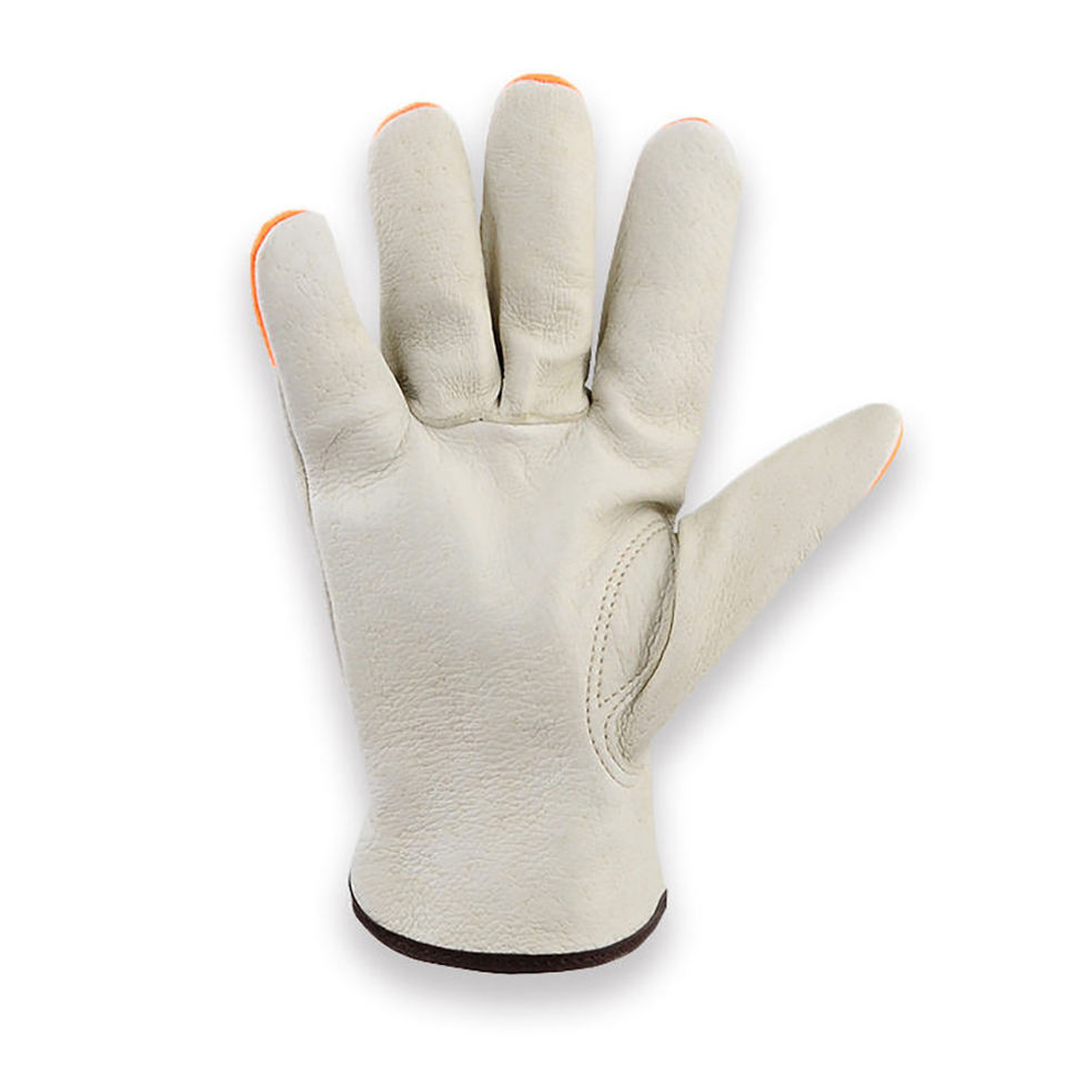 ถุงมือทำงานปาล์มสองชั้นเกรดอุตสาหกรรมเสริมหนังแยกทนต่อการขัดถูเหมาะสำหรับการก่อสร้างและการทำเหมือง