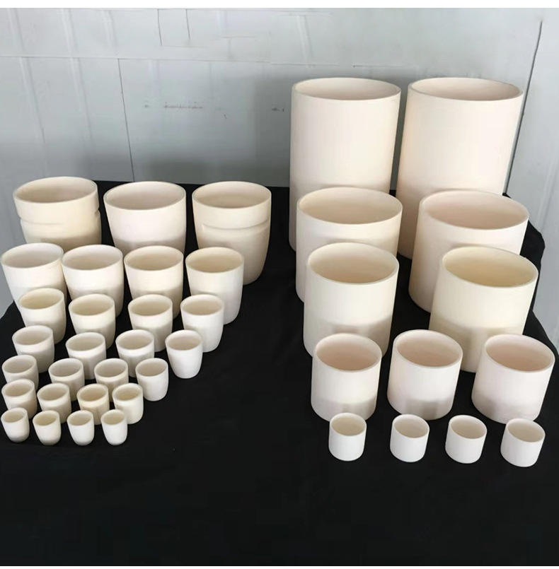 เบ้าหลอมเซรามิกอะลูมินาเกรดอุตสาหกรรม ทนความร้อนสูง รูปทรงโค้ง สำหรับหล่อเหล็กและหลอมโลหะ