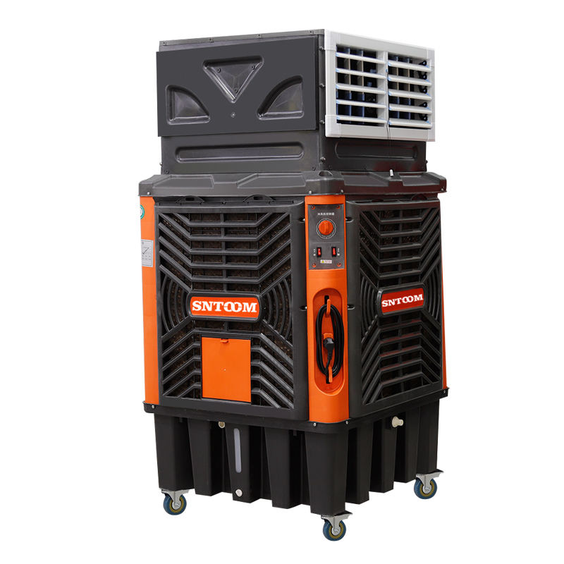 พัดลมไอเย็นแบบตั้งพื้นขนาดใหญ่เกรดอุตสาหกรรม ความจุสูง มอเตอร์ AC น้ำหนัก 28 กก. รับประกัน 1 ปี