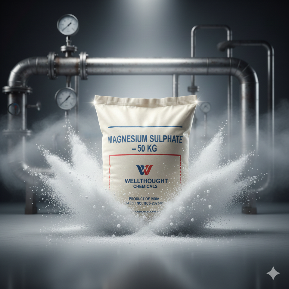 แมกนีเซียมซัลเฟตเฮปตาไฮเดรต เกรดอุตสาหกรรม ความบริสุทธิ์ 99.9% บรรจุถุง 50 กก. ผลิตภัณฑ์เคมีคุณภาพดีจาก WellThough Chemicals สำหรับการเกษตรและน้ำ