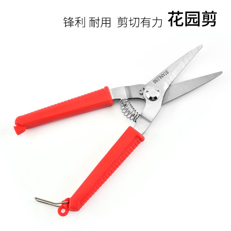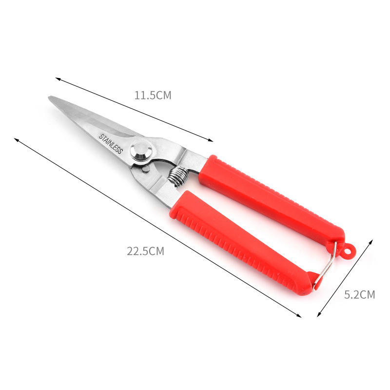 กรรไกรตัดแต่งกิ่งไม้สแตนเลสเกรดอุตสาหกรรมสำหรับสวนกลางแจ้ง ตัดตรง ใช้ตัดผลไม้ ด้ามจับพลาสติก