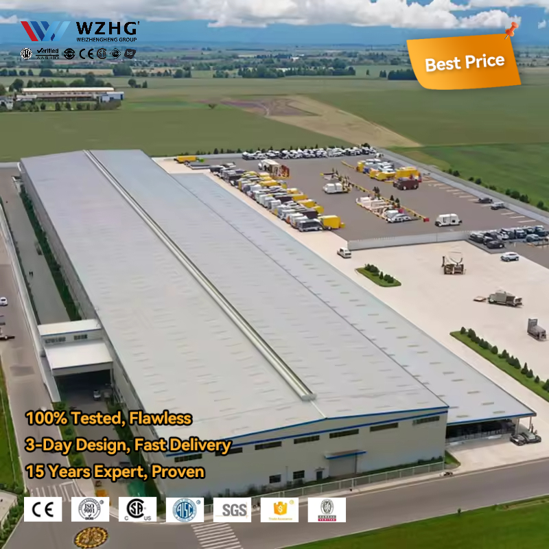 โรงงานโครงสร้างเหล็กสำเร็จรูปเกรดอุตสาหกรรม Q355B พร้อมผนังและหลังคาฉนวนเคลือบสีป้องกันสนิม