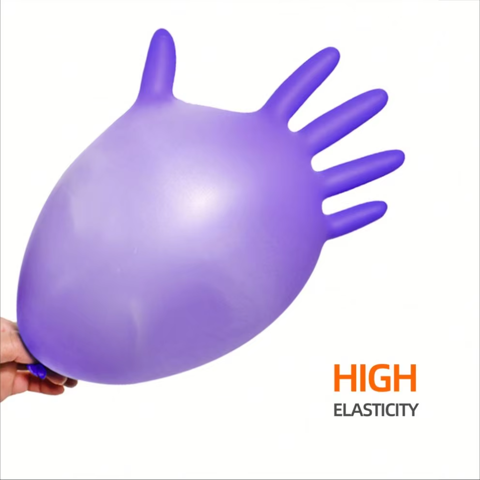 ถุงมือไนไตรล์สีม่วงเกรดอุตสาหกรรมแบบใช้แล้วทิ้งปลอดภัยต่ออาหารพื้นผิวเรียบ4-8mil หนา3ปีปรับแต่งได้