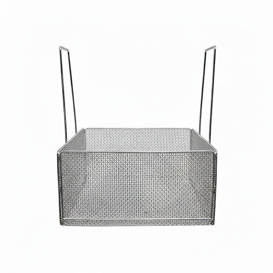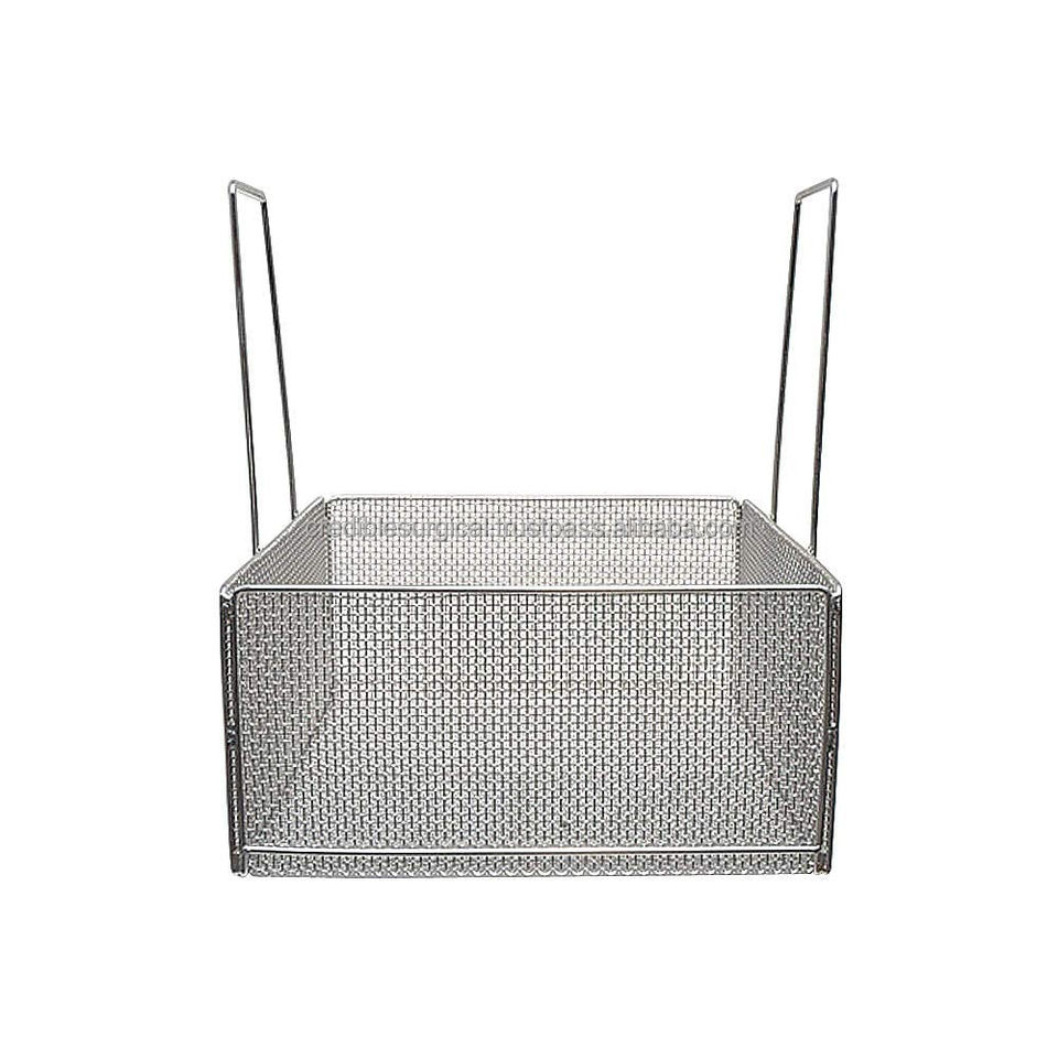 ถาดฆ่าเชื้อแบบใช้มือทำจากลวดตาข่ายสแตนเลสเกรดอุตสาหกรรม พร้อมหูจับ สำหรับเครื่องมือผ่าตัดแบบออโตเคลฟ ใช้ซ้ำได้