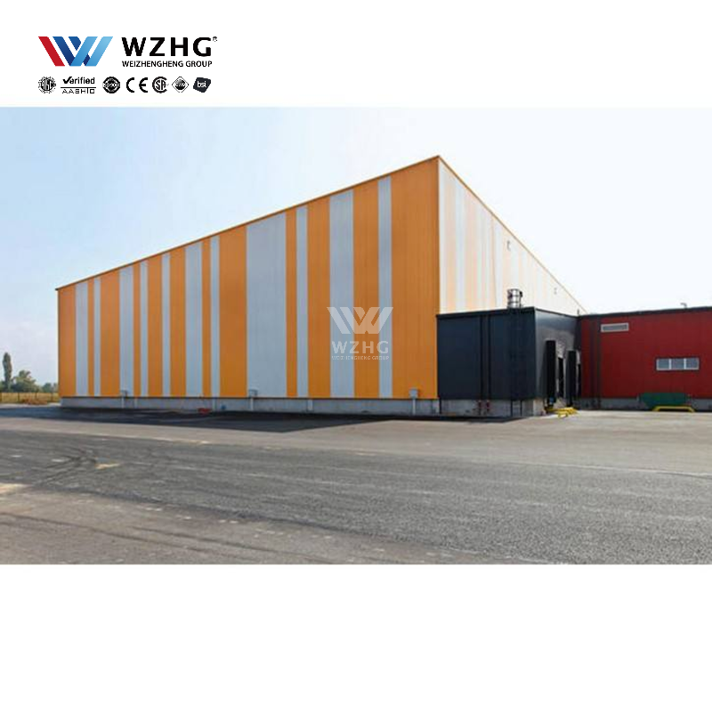 โกดังโครงเหล็กเกรดอุตสาหกรรมพร้อมแผงฉนวนกันความร้อนอายุ50ปีมีแรงลม200กม./ชม. สำหรับการจัดเก็บอุปกรณ์โลจิสติกส์