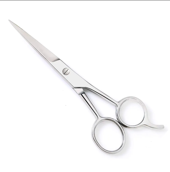 ใบมีดคมพร้อมที่วางนิ้วสำหรับร้านเสริมสวยกระจกกรรไกรตัดขนสแตนเลสเกรดอุตสาหกรรม