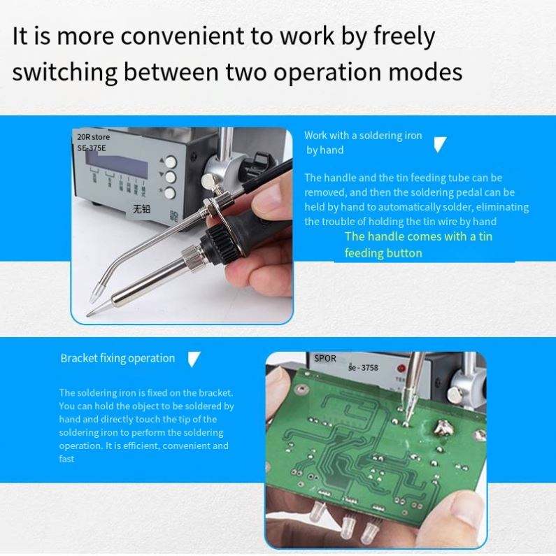 สถานีบัดกรีแบบกึ่งอัตโนมัติแบบมือถือสำหรับงานอุตสาหกรรม พร้อมจอแสดงผลดิจิตอลควบคุมอุณหภูมิคงที่ พร้อมตัวป้อนลวดแบบเท้าเหยียบรุ่นใหม่
