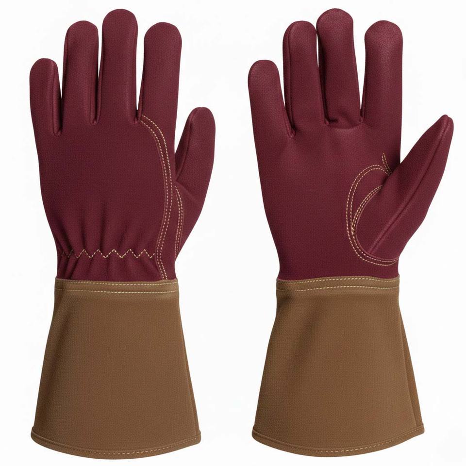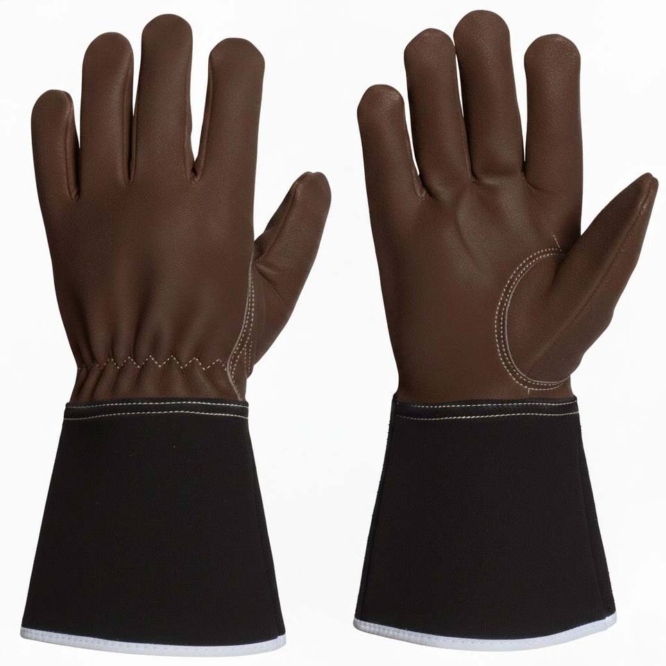 ถุงมือทำสวนแบบหนาพิเศษสำหรับงานอุตสาหกรรม ทนความร้อน ดีไซน์หนังวัวแท้ ป้องกันการบาด ทำจากหนังและโพลีเอสเตอร์ อุปกรณ์ป้องกันเพื่อความปลอดภัย