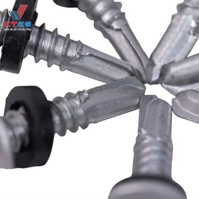 สกรูหัวหกเหลี่ยมอุตสาหกรรมแบบเจาะเองเคลือบดาโครเมทสำหรับติดตั้งคานเหล็ก